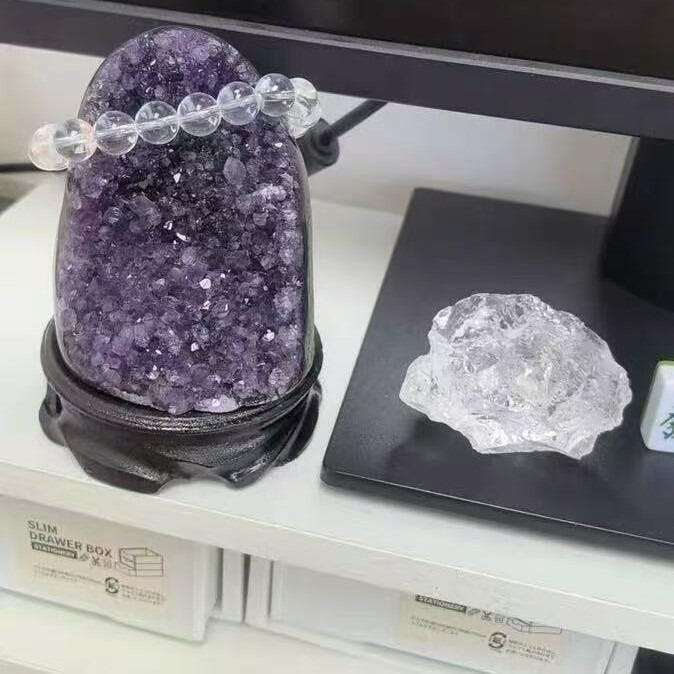 Sendo um minério bruto natural, cada geodo possui formato irregular, o que lhe confere um charme único. Ele serve como um ponto focal marcante, elevando tanto a energia do espaço quanto a elegância natural — muitos o veem como uma forma de transformar ambientes em refúgios tranquilos e positivos.