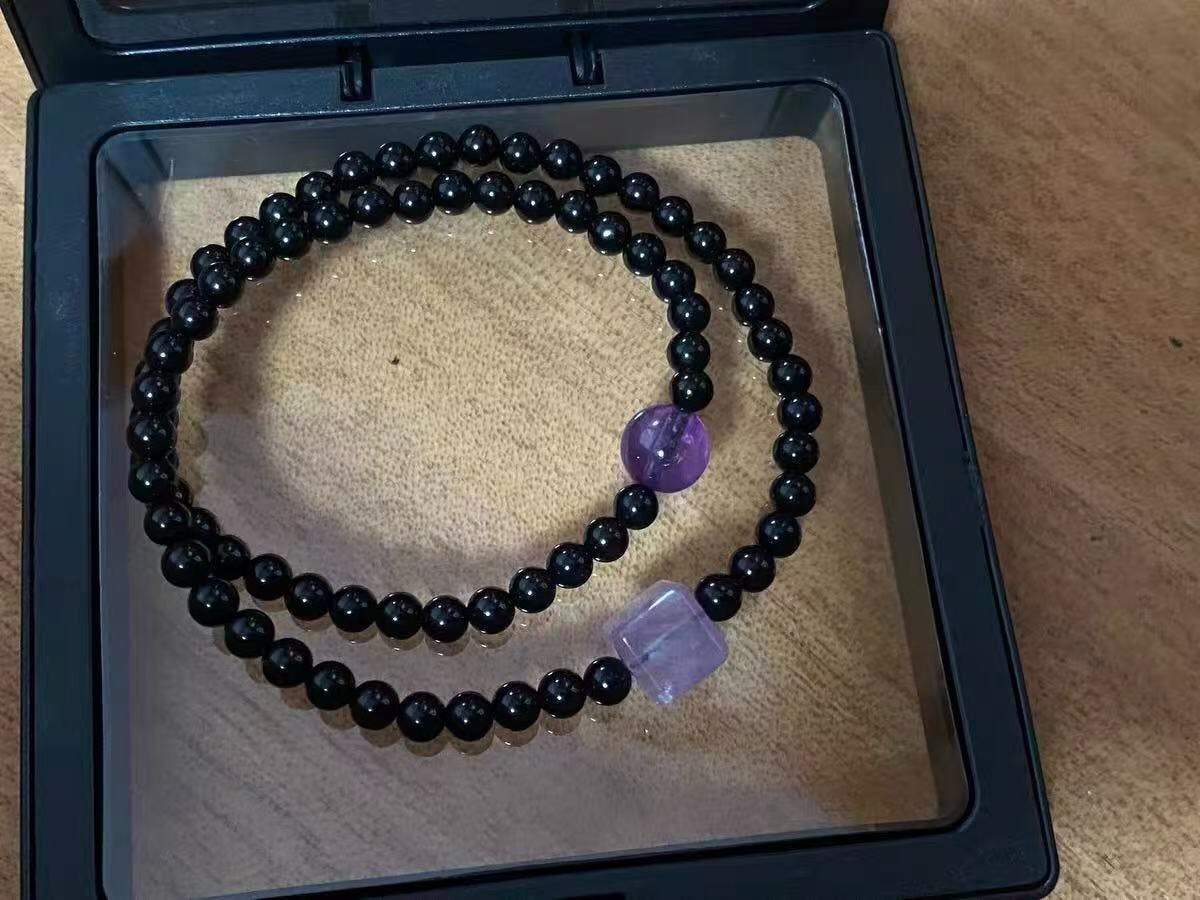 🔮 Pulseira de Ametista e Ônix: Proteção Cósmica + Impulso à Intuição