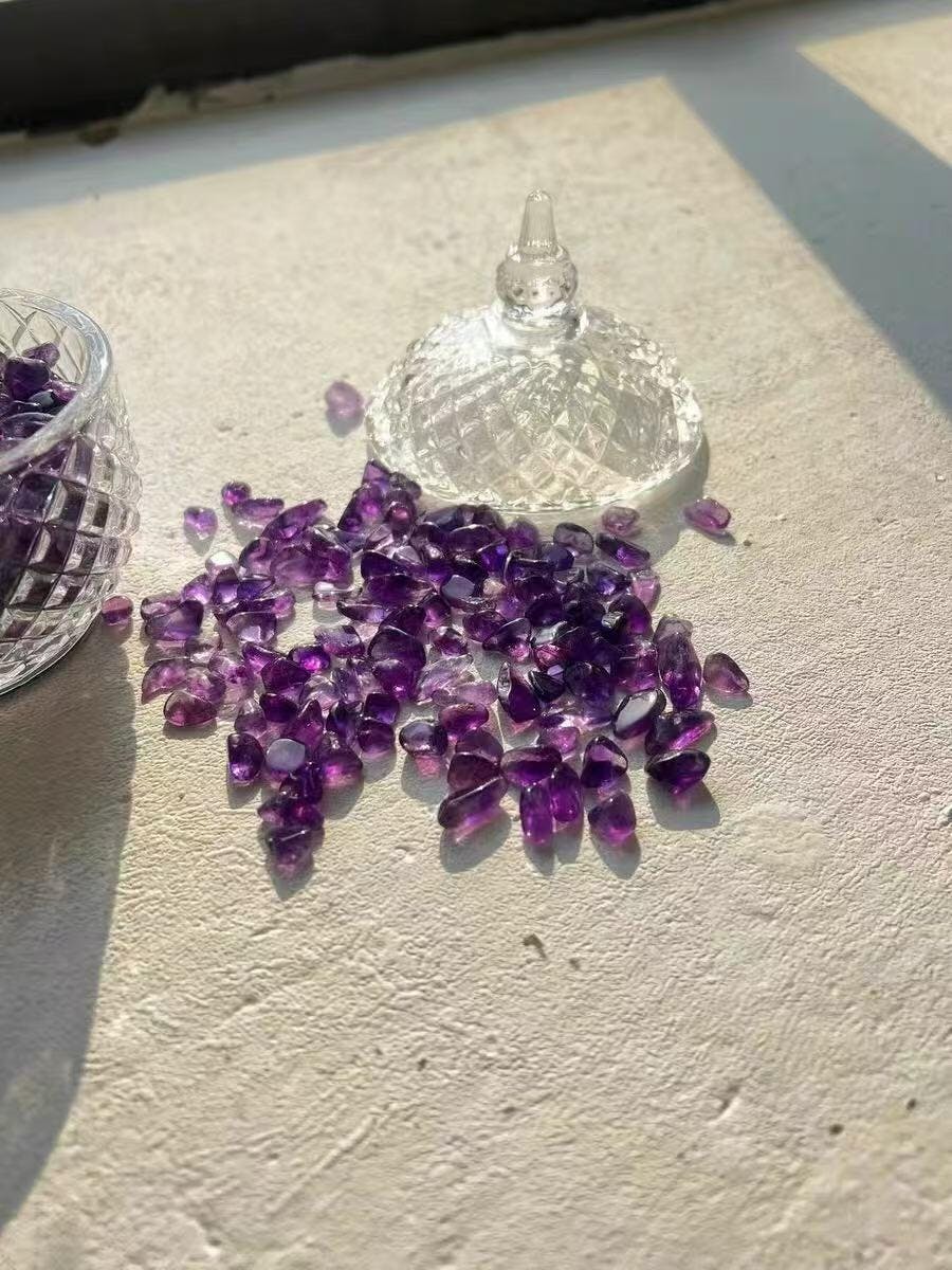 • Ametista : Roxo profundo, acredita-se que acalma e purifica a energia dos cristais, proporcionando tranquilidade.